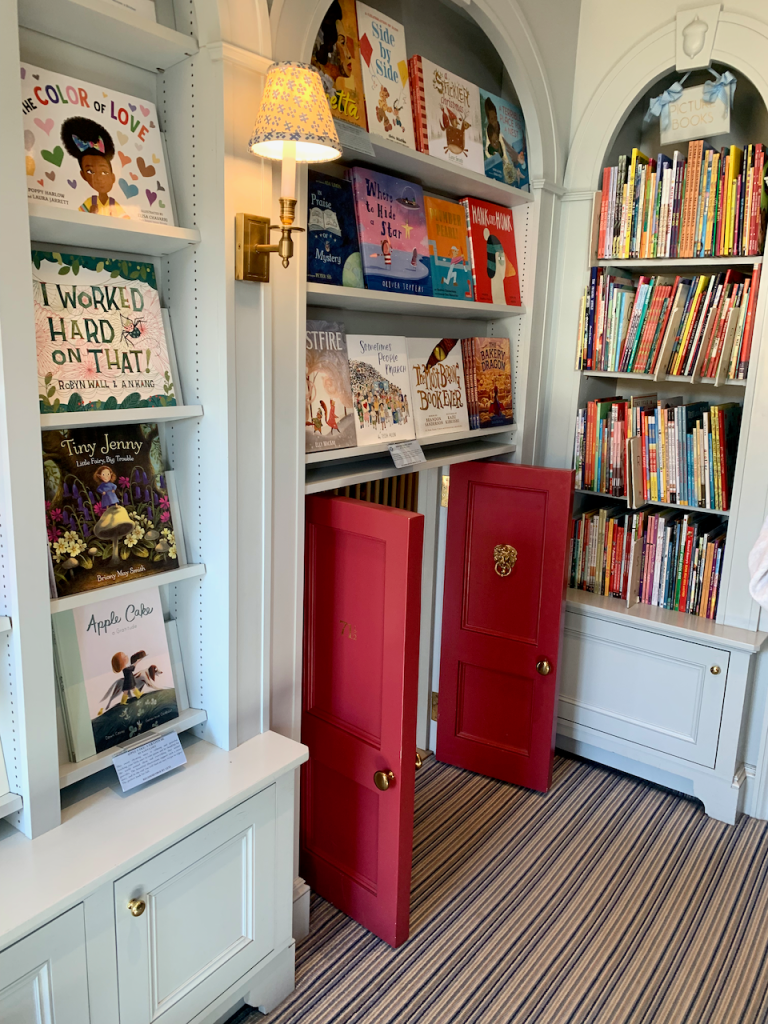 The children’s floor had a little secret door, as well as an electric train that ran along the ceiling. I decided that if I didn’t have a shelf of books lining my own living room ceiling, I’d want an electric train, of course.
