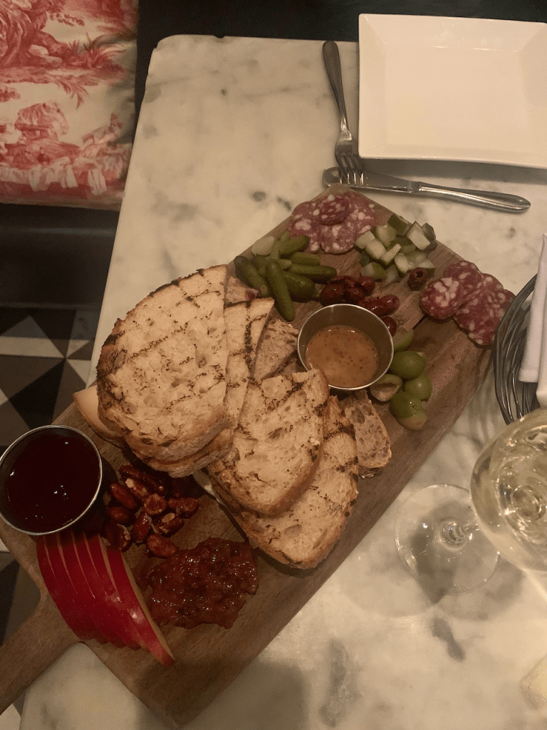 We wrapped up Day One with a leisurely dinner at Bistro du Midi. Jessica showed me options for restaurants at each of our meal times and we chose together. Who doesn’t want to kick off Girls Weekend in the city with French food & wine? We shared quite possibly the best charcuterie board I’ve tasted (I’m going to try to recreate it back home), then on to a burger and frites.