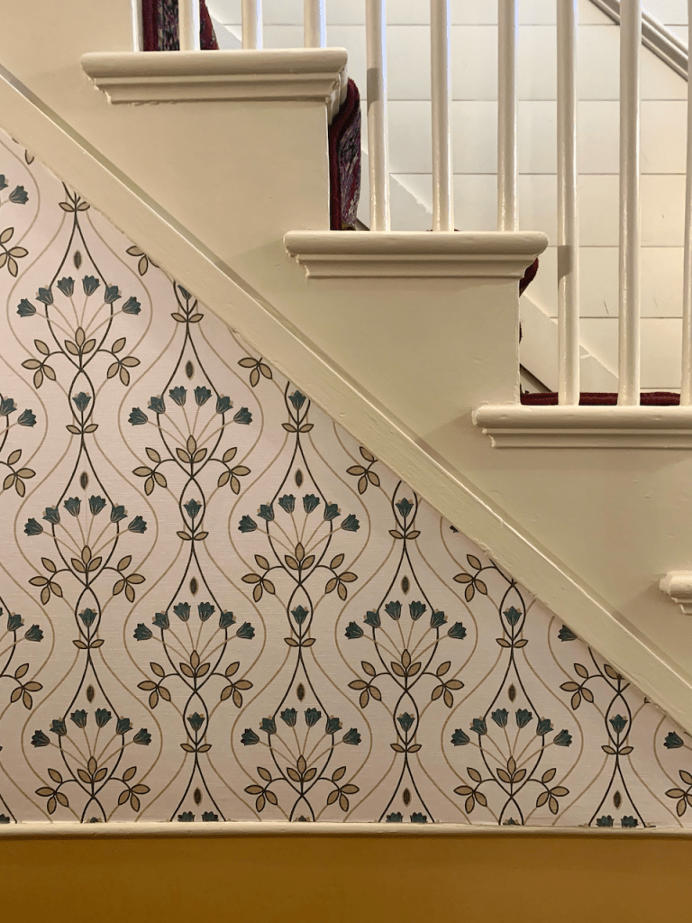 Even the stairs and planked walls and wallpaper and paint as you walk to the restroom. Even the restrooms themselves.