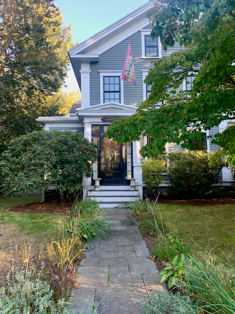 One of my number one desires for our trip was a visit to Louisa May Alcott’s home in Concord, and it was dreamy to walk the shaded sidewalks from town rather than park in a touristy parking lot. I pretended it was winter and were we laden with Christmas surprises for Marmee and will confess I felt a bit teary when we spotted the house.