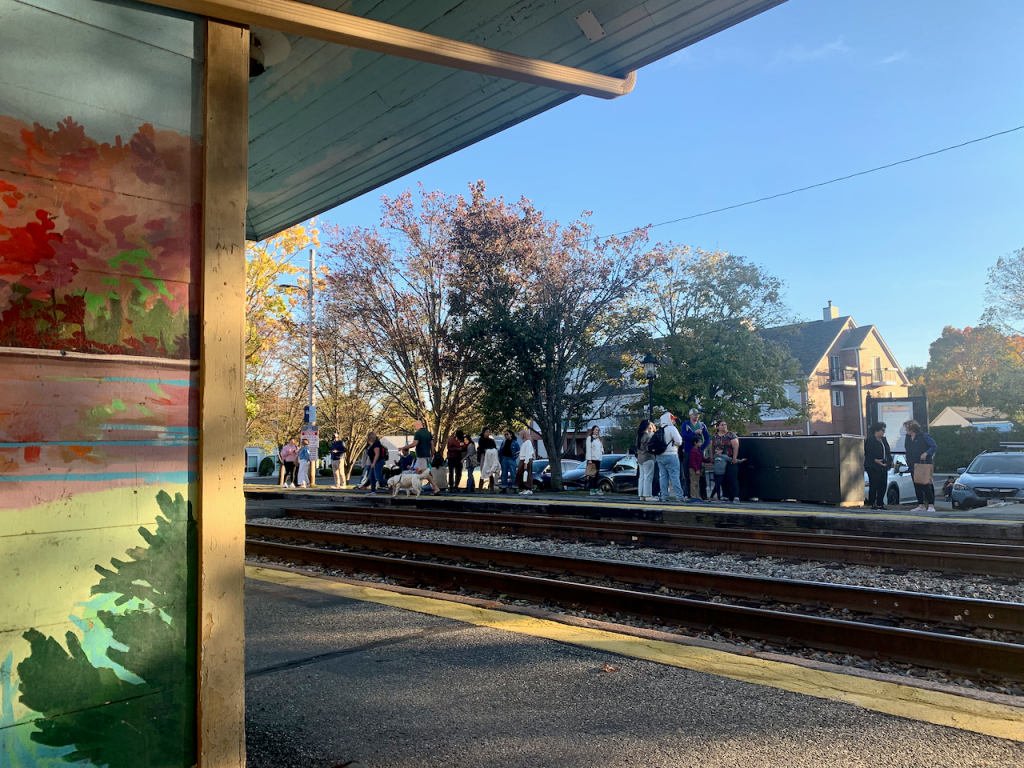 After an hour relaxing, we walked to the train stop to take the 5:15 train back into the city. Our train was delayed due to an “unruly passenger,” which sounded intriguing. That’s the downside of public transportation, isn’t it? Sometimes you feel like you do a lot of waiting. Alas, there was no sign of the unruly passenger on our journey home.