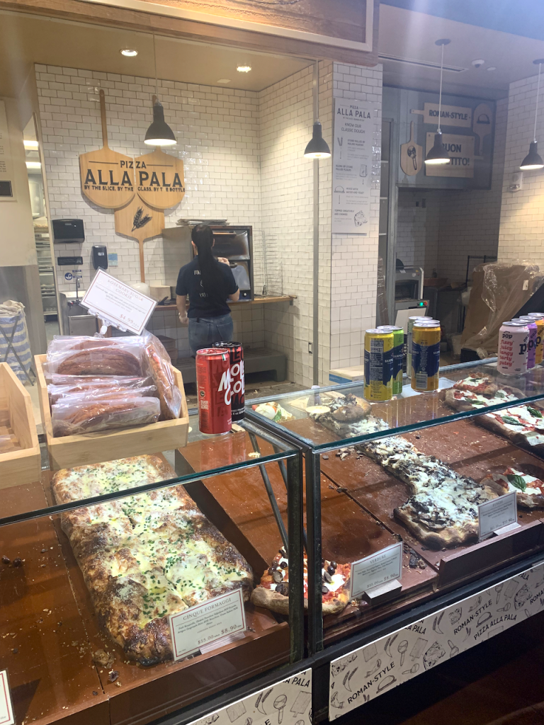 It was 7:00 by the time we got off the T in our part of the city, and we were far too exhausted to eat dinner out. There’s an Italian food hall called Eataly around the corner from our hotel, so we stopped there for pizza to-go. It was two-stories of every Italian delight you can imagine: stalls for pizza, fresh-made pasta, cannoli and gelato and wine. There was even a market right in the center brimming with fresh produce. The food hall was also loud and packed with people. We were both a little shell-shocked by all the options and noise but finally found some dinner and escaped.