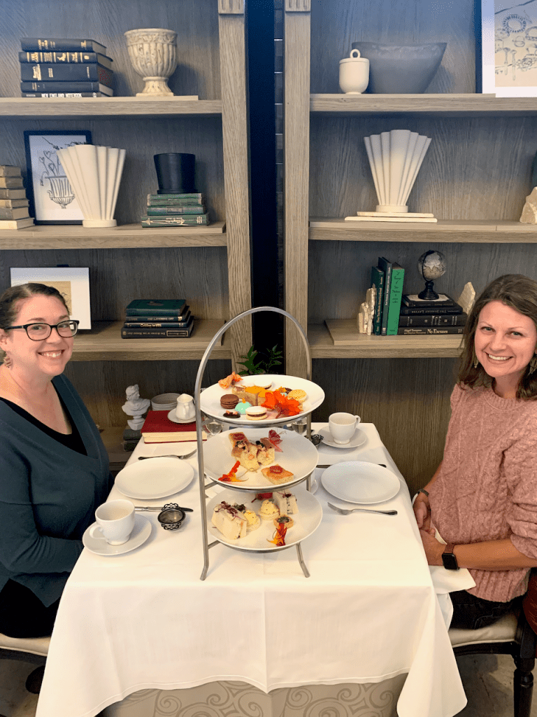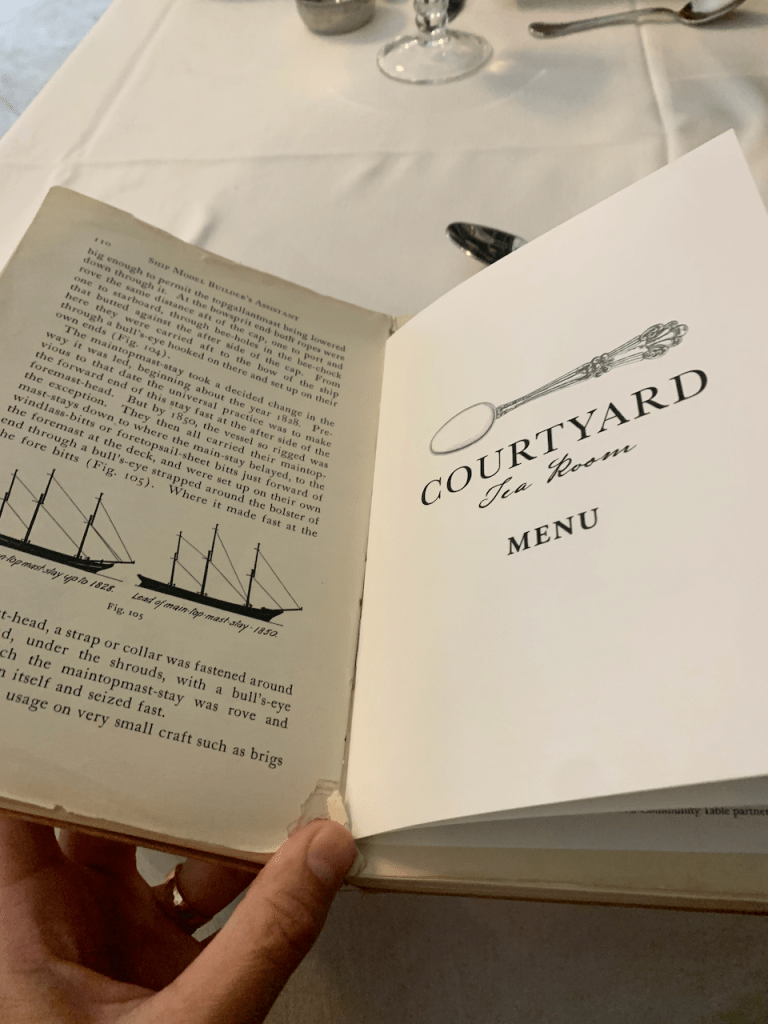 I didn’t know this, but you can make a reservation for high tea at the library in the Courtyard Tea Room. Thank you, Jessica, for knowing this and suggesting we experience a high tea here together.