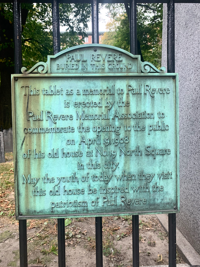 Jessica has been here before, but I just gulped it all in. So much so that I didn’t do the best job of following the actual path and kept wandering off into crowds. There was just so much to see. This is where Paul Revere is buried and where he lived. This is where the Boston Tea Party was planned and where Phyllis Wheatley was baptized. These are some of the places in which we became a country.