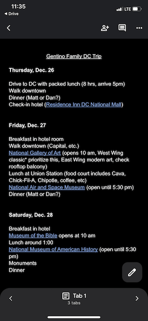 David and I took a date to Barnes & Noble the week before Christmas to drink coffee and plan our basic itinerary. Neither of us love this logistics stage, so we try to make it as fun as possible with a date.