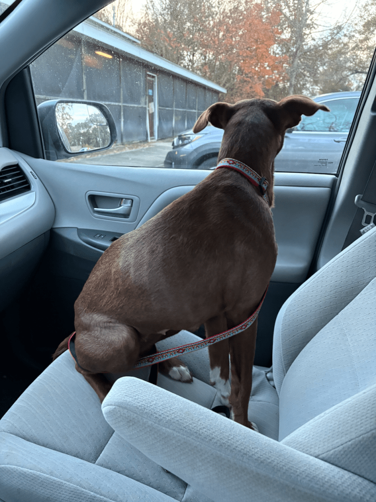 I got the number of her foster mom, we texted, and a week later — after the dog was spayed — I drove to Columbia Animal Services to pick her up.