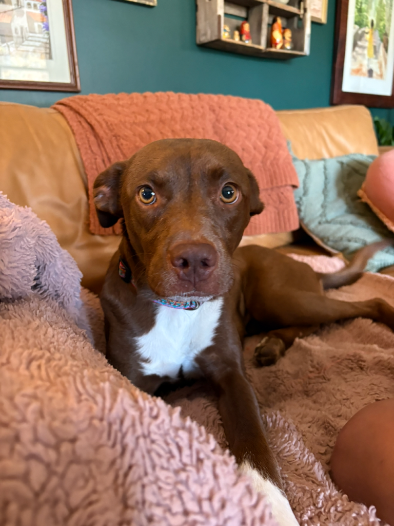 Regret almost instantly flooded me when I signed the papers for us to foster-to-adopt this dog. She had kennel cough, a nosebleed, and was skin-and-bones. Also: she whined loudly the entire 25-minute drive home. I felt mildly panicked about my impulsive decision.